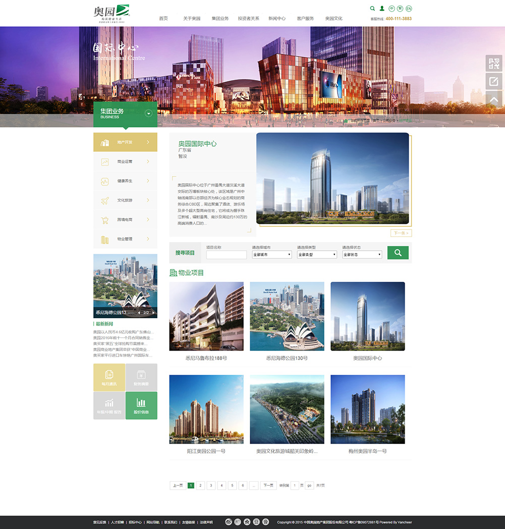 奧園地產集團戰略布局以“珠三角”、“環渤海”、“長三角”、“北部灣”及“中西部”等內地五大經濟圈為核心,并輻射澳大利亞悉尼,開發樓盤達到60多個,為百萬業主創造了舒適及優越的生活條件。