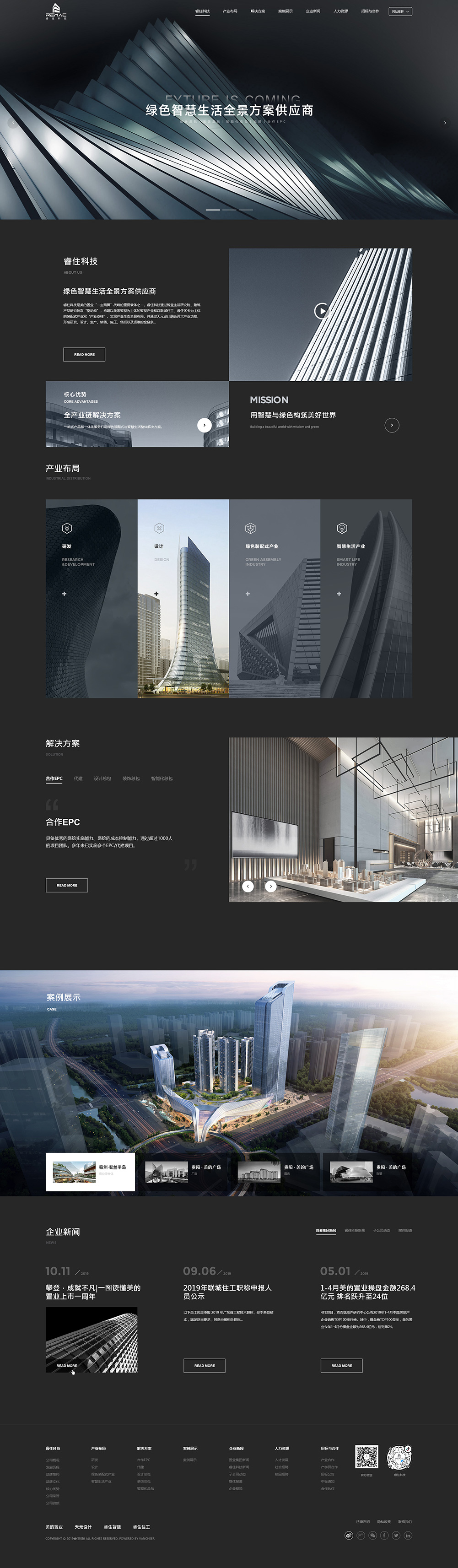 睿住科技是美的置業“一主兩翼”戰略的重要載體之一,睿住科技以智慧生活研究院、產業產品研究院的自主研發能力為驅動,構建以睿住智能科技公司為主體的智慧生活產業,以及以睿住住工科技公司、睿住優卡科技公司為主體的綠色裝配式產業,實現智慧綠色產業生態全景布局,通過天元設計院、代建公司、產城公司融合兩大產業功能,形成研發、設計、生產、銷售、施工、運維及產城開發運營的全鏈條復合服務能力。