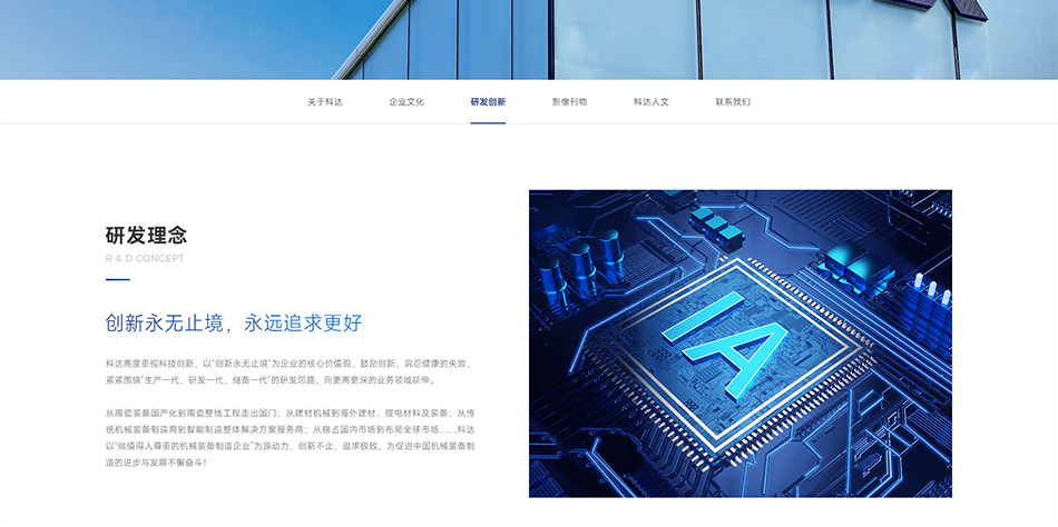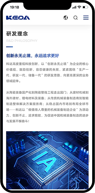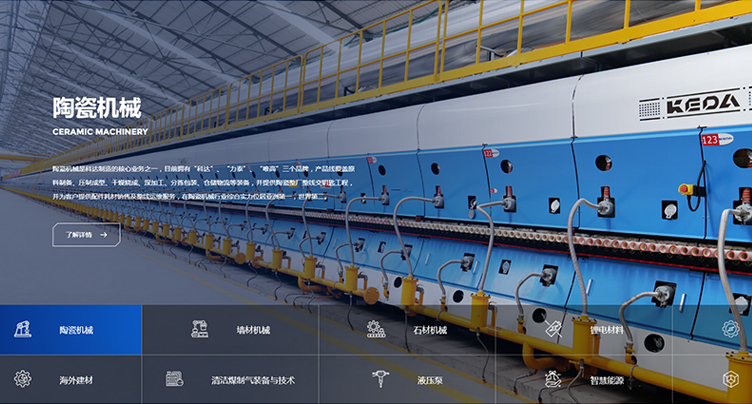 科達制造一舉實現“陶機裝備國產化”、“做世界建材裝備行業的強者”的歷史目標,成長為我國乃至世界陶瓷機械行業的龍頭企業。為了樹立公司在行業中的專業性和領導地位,希望通過新的官網平臺來傳遞科達制造的企業形象,提升品牌調性,吸引潛在客戶與公司建立聯系。