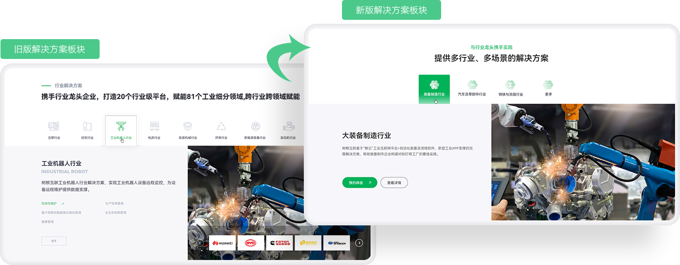 樹根互聯是工信部遴選的第一批國家級跨行業跨領域工業互聯網平臺企業,為全球各行各業工業互聯網數字化轉型服務,為了更高效地向用戶傳遞更具競爭力的信息,需升級官網,從而達到突出產品價值,提升品牌調性,提高獲客轉化率的目的。